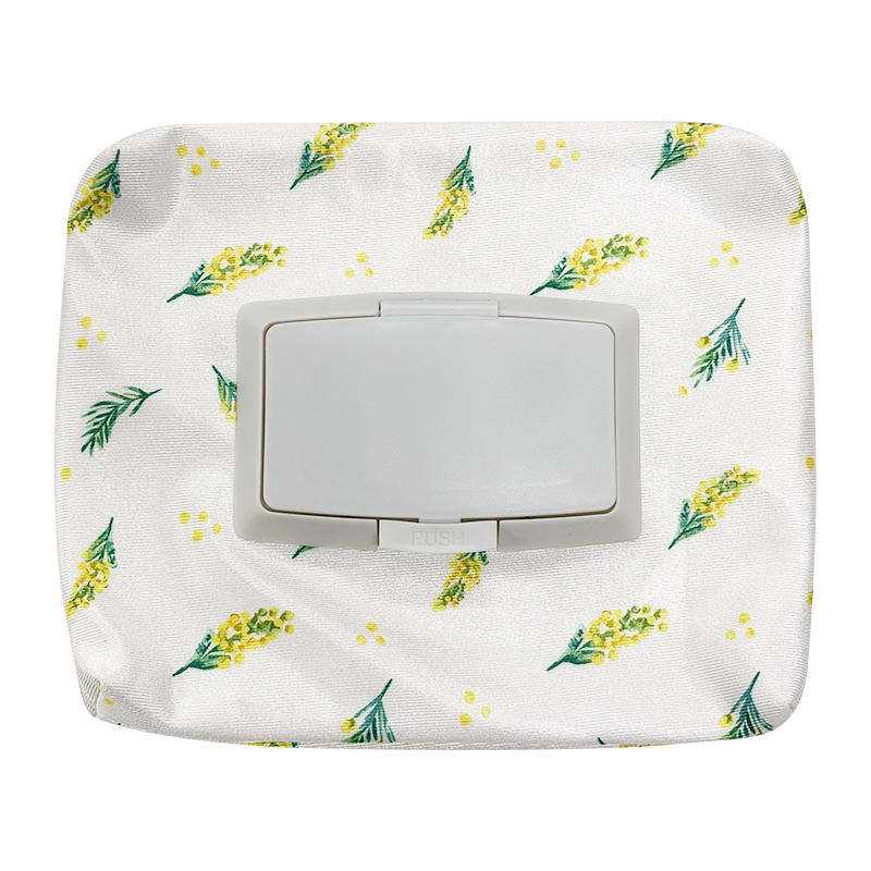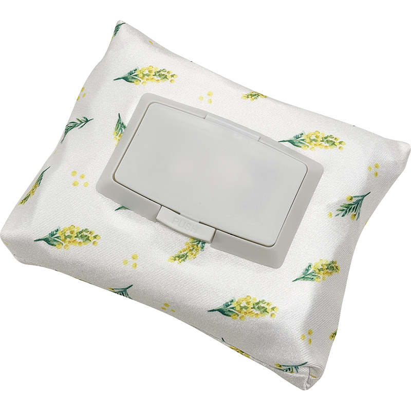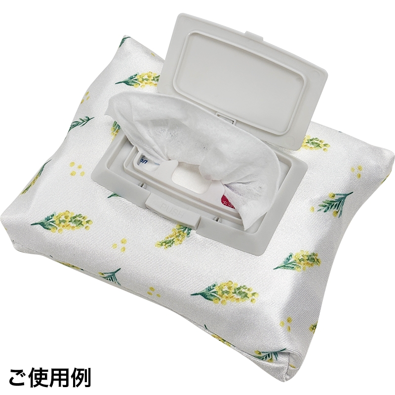 伸縮性のある生地で、おしりふきやウェットティッシュを包んで可愛くカバーします。 お部屋での使用はもちろん、お出かけにもおススメです。 フタは、おしりふきやウェットティッシュを一枚ずつ取出しやすいキバ付きで、ワンプッシュで開きます。