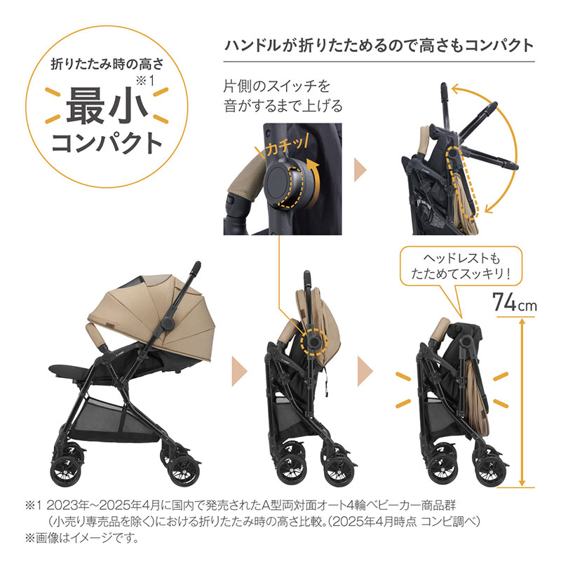 ●対象月齢:生後1ヵ月~36ヵ月頃まで(体重15kg以下) ●本体重量:5.8kg(※ヘッドサポートを除く) ●サイズ: [開]W490×D825~925×H950~1042 [閉]W490×D460×H740~1012 ●リクライニング:125~170度