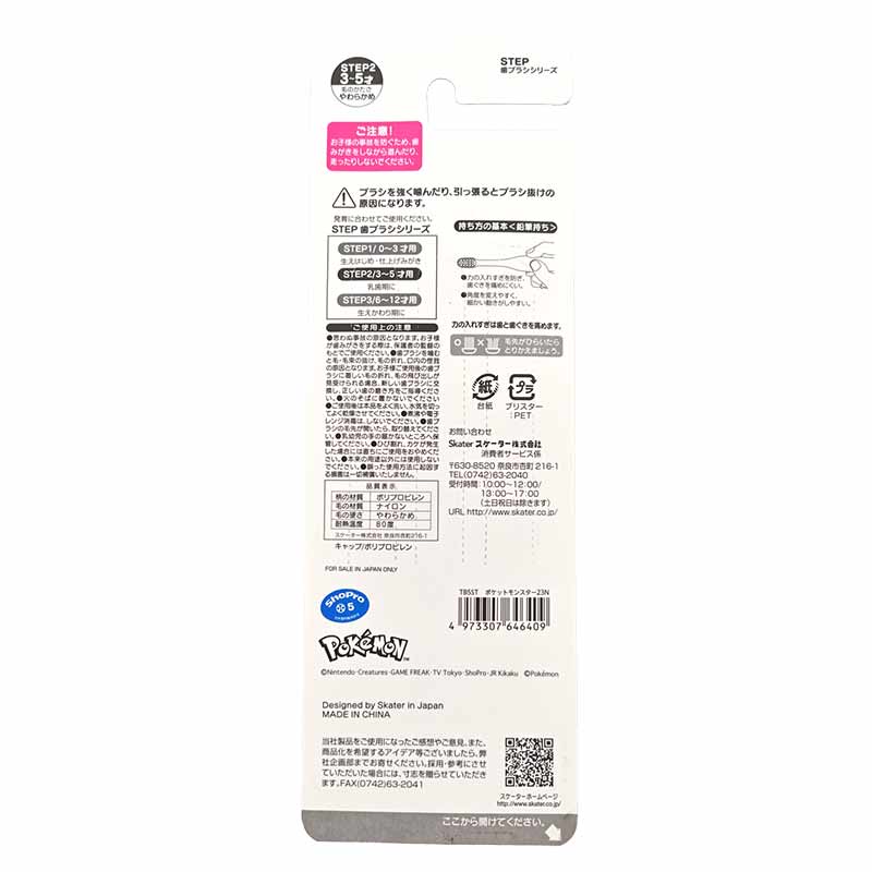 ストックに便利な園児用の歯ブラシ3本セット。 歯ブラシキャップ1個付き (c)Nintendo・Creatures・GAME FREAK・TV Tokyo・ShoPro・JR Kikaku (c)Pokemon
