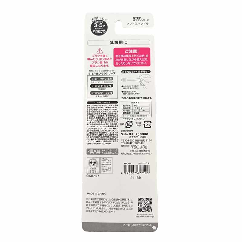 3本セットだから、取り替え時期にも困らない。 透明感のあるクリアなボディも可愛らしい。 乳歯期に歯みがきの習慣をつけておくのは大切なことですね。 かわいいキャラクターと一緒なら毎日の歯みがきも楽しくなること間違いなし。 毛の硬さはやわらかめです。 奥まで磨きやすいコンパクトヘッド。 仕上げみがきしやすいロングネック。 持ちやすいグリップ。 キャップ付きなので、携帯や旅行などに便利。 (c)Disney