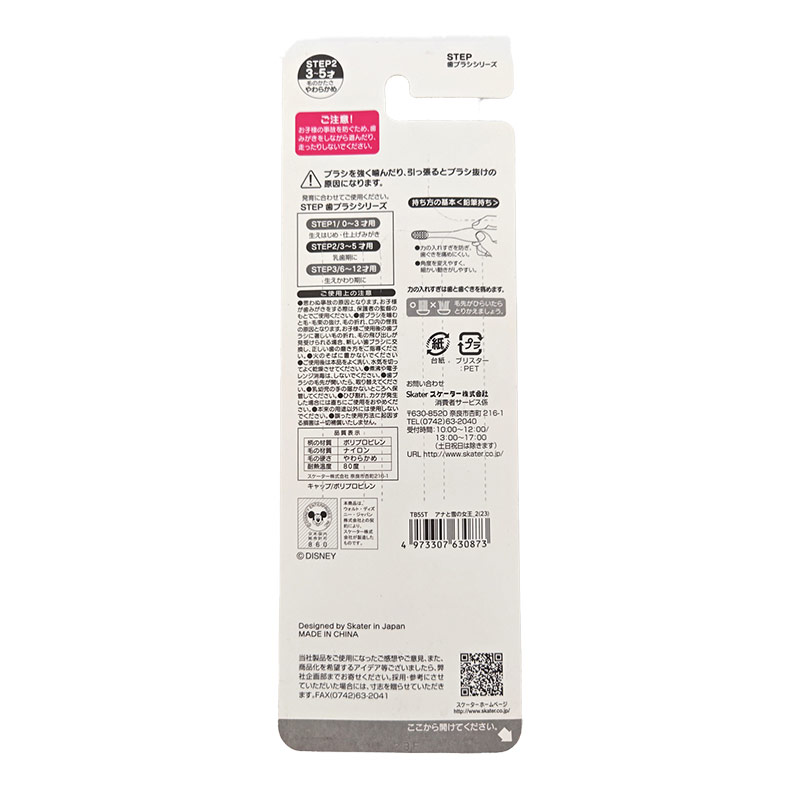 ●対象:園児用(3~5才) ●サイズ(約・mm):長さ 140 ●毛の硬さ:やわらかめ ●耐熱温度:80度 ●材質:柄・キャップ:ポリプロピレン、毛:ナイロン