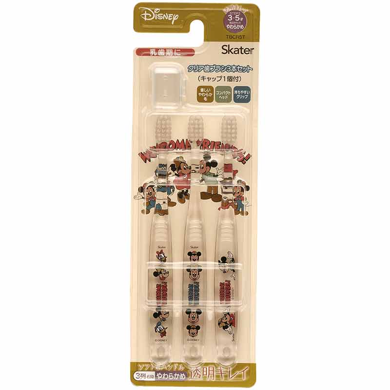●透明感のあるクリアなボディが可愛らしい3本セットの歯ブラシです。 ●キャップが1個付いているので、携帯や旅行などに便利です。 ●かわいいキャラクターと一緒なら毎日の歯みがきも楽しくなります。 ●毛の硬さはやわらかめです。 (c)Disney