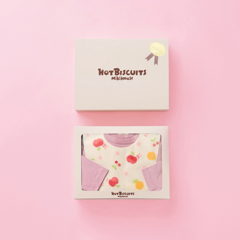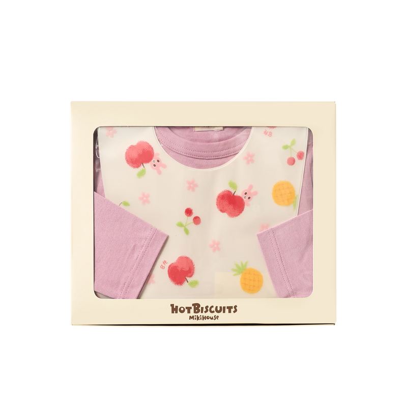 ミキハウス ホットビスケッツのベビーギフトセット。 人気のEveryday Seriesの長袖Tシャツとランチスタイのセットです。 長袖Tシャツは胸元のワンポイント刺繍がかわいく、シンプルなデザインなので通園通学にもおすすめ◎ 一枚でも、オーバーオールやジャンパースカートと合わせてもかわいく着ていただけます。 お食事スタイはパステルカラーの総柄がかわいいデザインで、 首や体にあたっても痛くない、やわらかでソフトな柔軟樹脂素材。 食べこぼしをキャッチできるように、スナップボタンをとめると立体的なポケットが作れ、 くるくると丸めるとコンパクトになるので持ち運びもしやすく、おうちでもおでかけでも便利です。 人気の商品がお箱に入っているので出産祝いなどのギフトにぴったり◎ 〈セット内容〉 ・長袖Tシャツ(80cm)【型番:70-5209-683】 ・お食事スタイ(フリーサイズ)【型番:70-2985-148】 ★★こちらの商品はギフトセットとなっておりますので、商品価格のわかるタグはついていません。プレゼントにおすすめです★★★