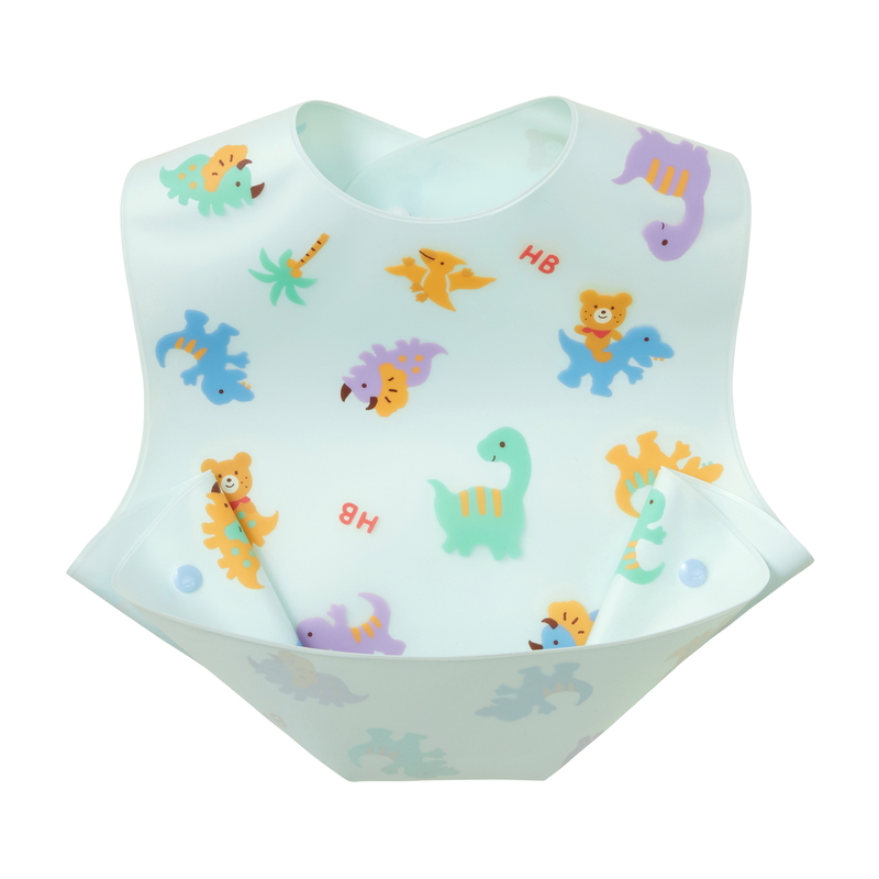 食べこぼしをキャッチできるように、スナップボタンをとめると立体的なポケットが作れ、