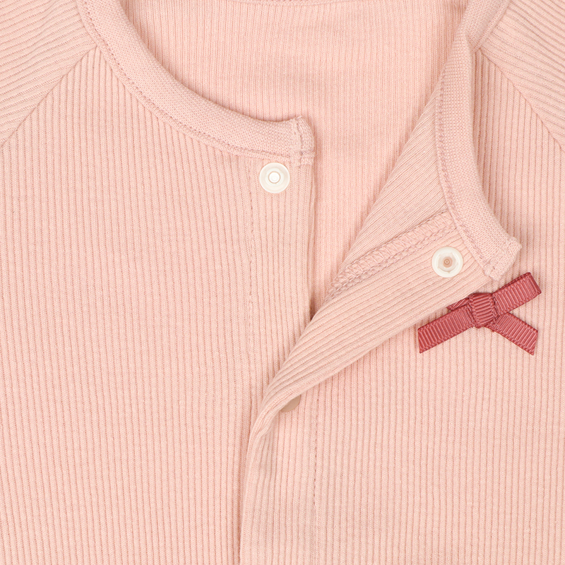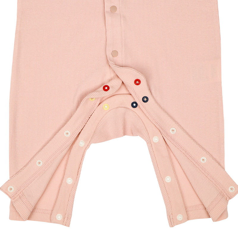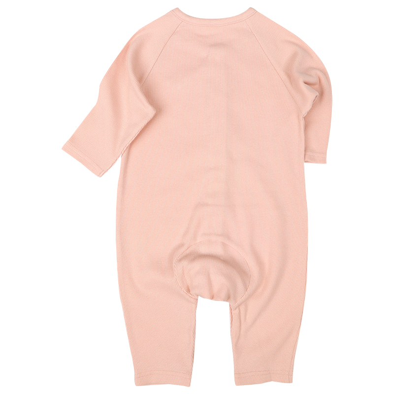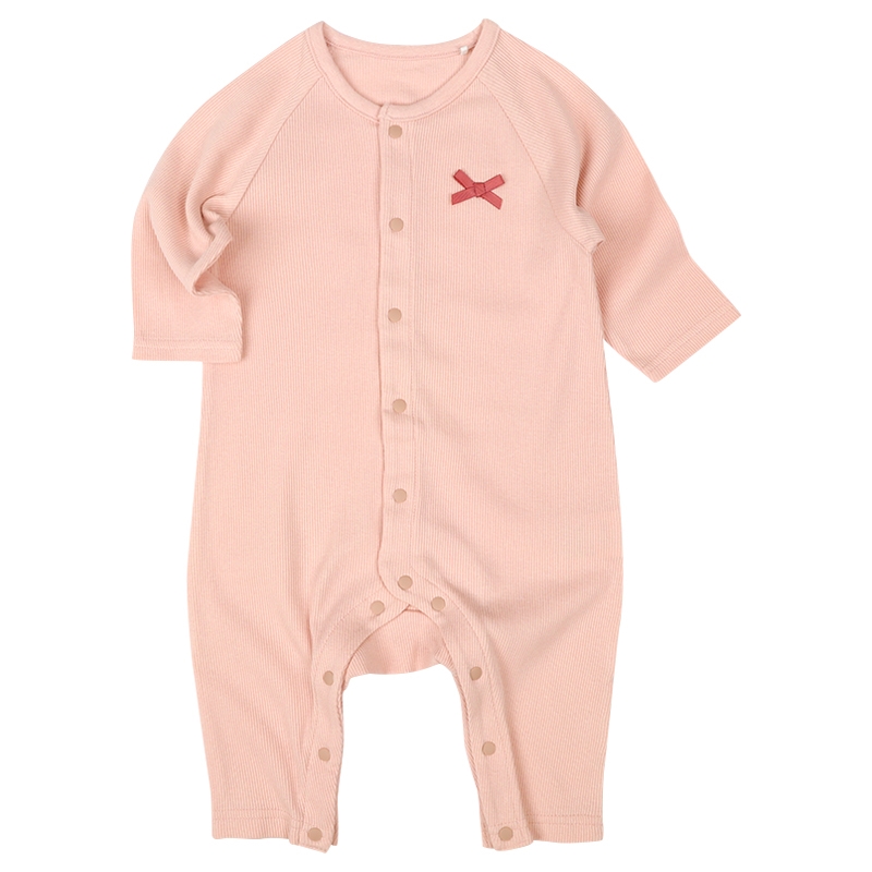 身頃部分に綿100%の生地を使用したシンプルなプレオールです。 ボタンは付け間違い防止の為に股部分が配色になっております。 シンプルなデザイン・シルエットなので着て行く場所を選びません。 カラーも可愛く、毎日でも着たくなる1着です。