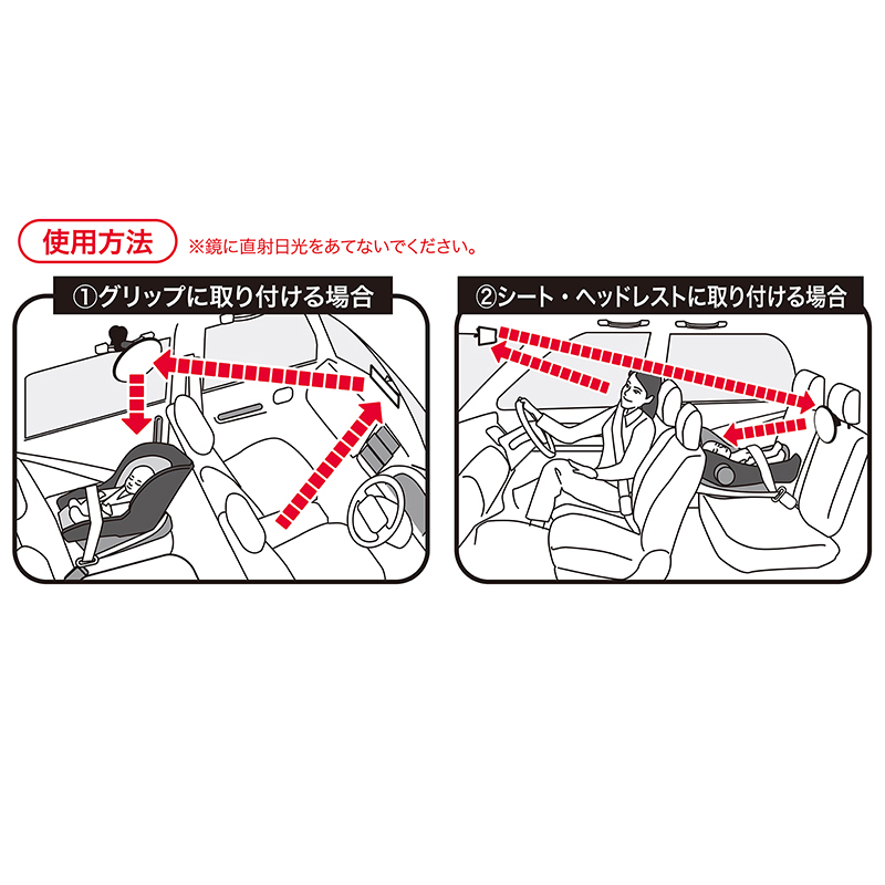 ●ミラーサイズ(約・cm):直径22cm ●材質: [ミラー部](カバー)ABS樹脂 (ミラー)アクリル樹脂 [アーム部](ジョイント)ポリアセタール・ABS樹脂 (カバー)ポリエチレン [クリップ部](クリップ本体)ABS樹脂 (バネ)ステンレス鋼 (すべり止め)EVA樹脂 (ひも)ナイロン ※初めてご使用の際は、ミラー表面の保護フィルムを剥がしてからお使いください。 ※運転中に取り付けや調整をしないでください。