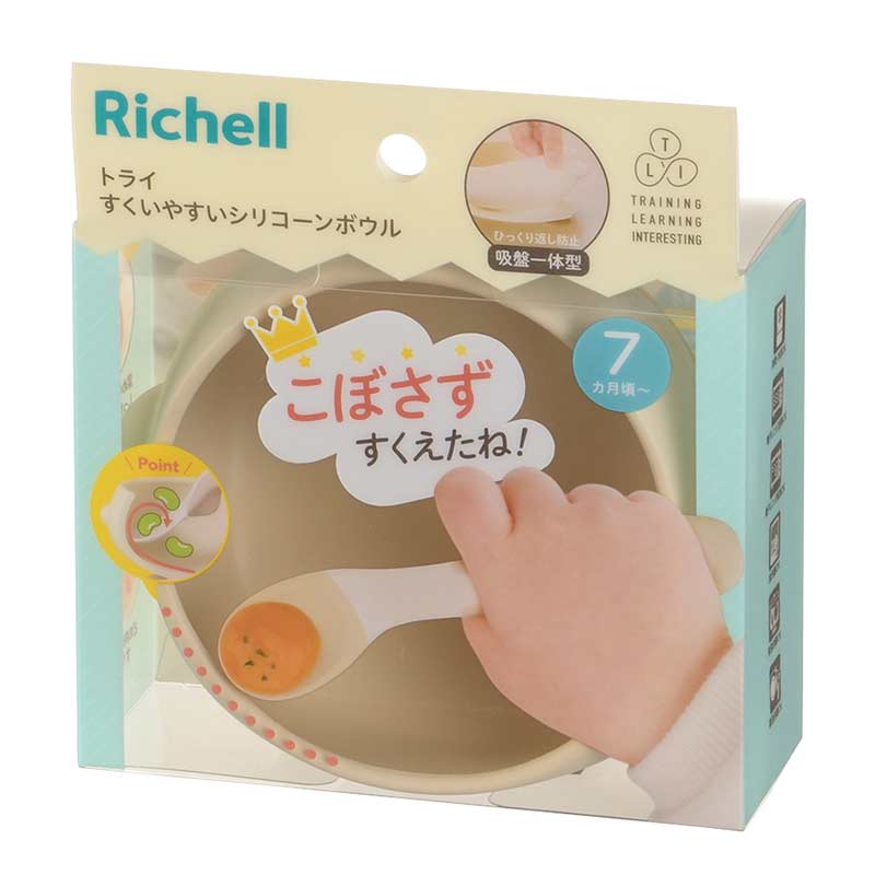 ●材質:シリコーンゴム ●対象月齢:7ヵ月頃~ ●電子レンジ対応: 加熱(○) 解凍(○) ●食洗機:可 ●耐熱温度 140℃ 耐冷温度 -20℃ ●容量:370mL ●消毒: 煮沸消毒・薬液消毒:可 電子レンジ消毒:不可