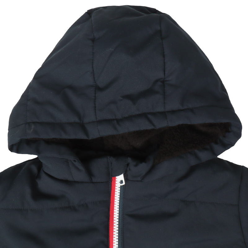 ●ベビー中綿入りジャケット。●防寒も裏ボアツキで温かい仕様となっています。寒い季節のお出かけや外遊びに必需品となる商品です。●ファスナーガード付きで、肌の巻き込みを防止します。フード付き(取り外し不可)。