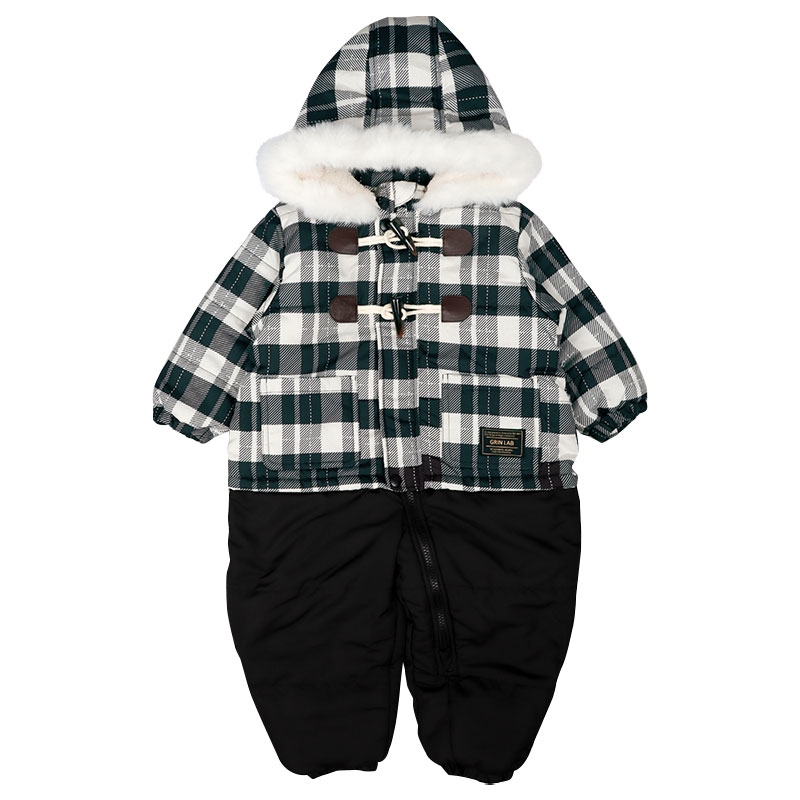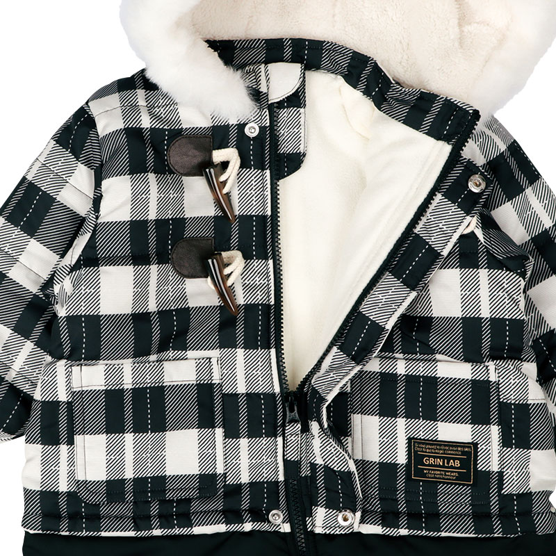 ●寒い季節の外遊び、雪遊びに必需品のジャンプスーツは、中綿入りで暖か。可愛いデザインのベビー防寒着のつなぎタイプ。フード付き(取り外し不可)。