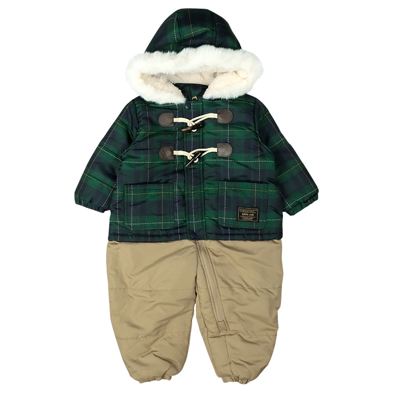 [ベビー]チェックジャンプスーツ グリーン