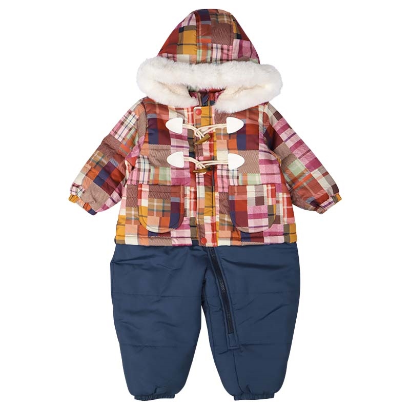 ●寒い季節の外遊び、雪遊びに必需品のジャンプスーツは、中綿入りで暖か。可愛いデザインのベビー防寒着のつなぎタイプ。フード付き(取り外し不可)。