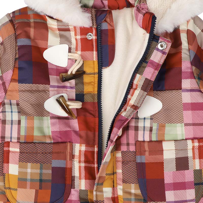 [ベビー]パッチワークチェックジャンプスーツ レッド
