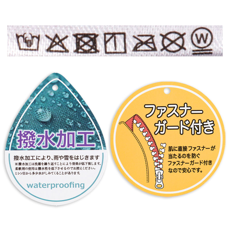 ●足口は2重で風や雪が入りにくいゴム入りです。ファスナーガード付きで肌の巻き込みを防止します。