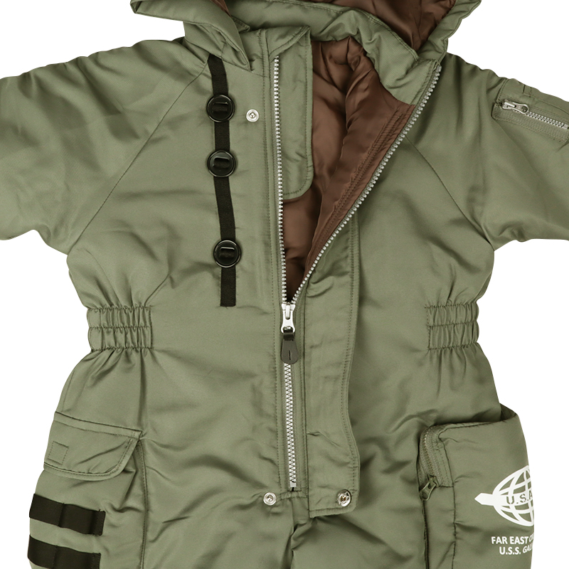 ●素材=表地 中わた 裏地 ポリエステル100% リブ ポリエステル97% ポリウレタン3% ファスナー引手 合成皮革 ●サイズ(約・cm) 80cm=着丈71・身巾40.5 90cm=着丈77・身巾41.5 95cm=着丈81・身巾42.5 100cm=着丈88・身巾44 ●原産国=中国製