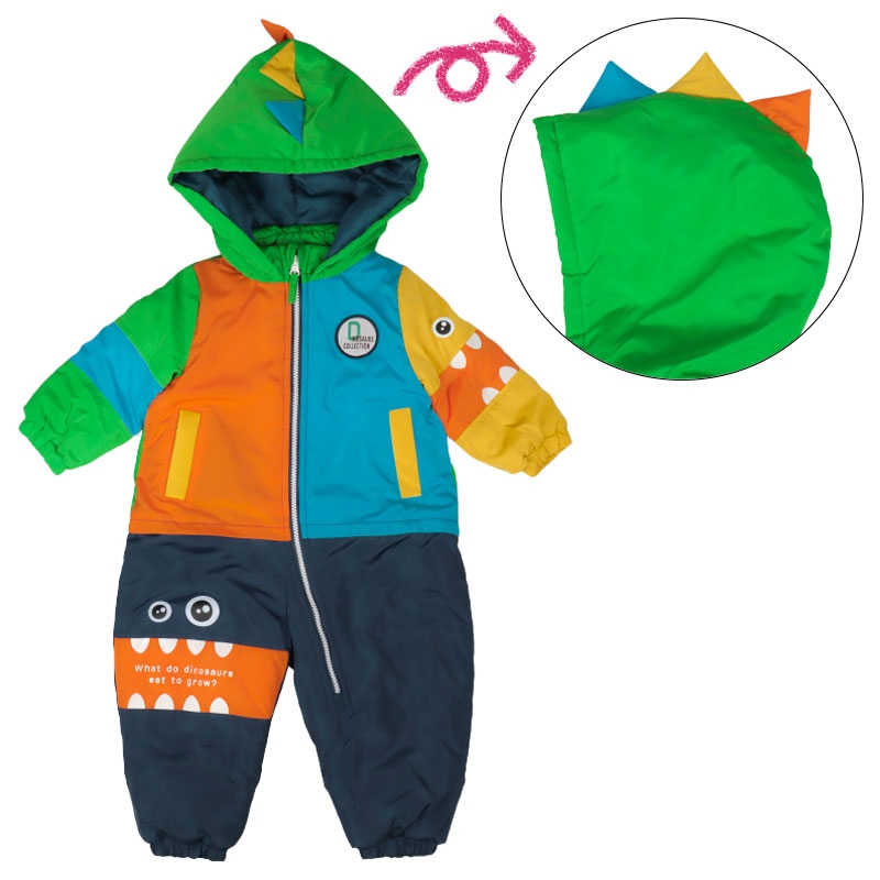 ●寒い季節の外遊び、雪遊びに必需品のジャンプスーツは、中綿入りで暖か。可愛いデザインのベビー防寒着のつなぎタイプ。フード付き(取り外し不可)。 ●足口は2重で風や雪が入りにくいゴム入りです。ファスナーガード付きで肌の巻き込みを防止します。
