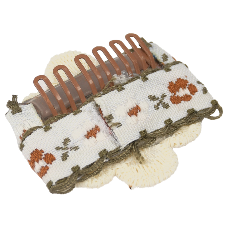 伝統的なチロリアンテープの柄を上品にあしらったピンの上に、華やかで落ち着きのあるお花のコームピン。 シリコンコーティングのコームでしっかりとまります。 ※写真はイメージです。実際の商品と異なる場合がございます。 ※用途以外の使用はおやめください。