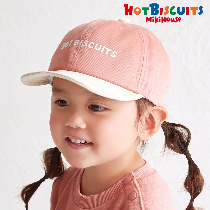 ミキハウス ホットビスケッツのバイカラーロゴキャップ(帽子)。