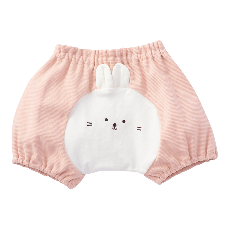 身頃部分にストレッチ性のある素材を使用したパンツです。 おしり部分にはアニマルのモチーフがあり ハイハイや歩いている時により可愛くなる商品です。 着用の際、窮屈感がなくお子様に負担をかけず動きやすいパンツです。