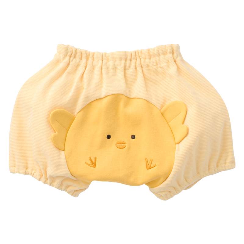 身頃部分にストレッチ性のある素材を使用したパンツです。 おしり部分にはアニマルのモチーフがあり ハイハイや歩いている時により可愛くなる商品です。 着用の際、窮屈感がなくお子様に負担をかけず動きやすいパンツです。