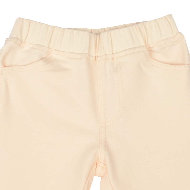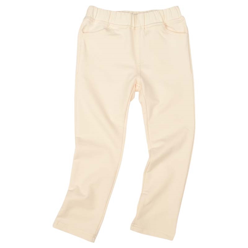 伸縮性があるカットソー生地を使用しました。はき心地の良さが特徴です。 程よい厚さなので、丈夫で、長いシーズン着用できます。 ヒップをキチンと包み込み形、両脇部分でウエストゴムを固定したゴムねじれを防止など、 ストレスフリーで、いつでもはきたくなるパンツです。 足口に向かって少しだけ細くなるスッキリシルエットです。 名前が書けるお名前タグ付きです。