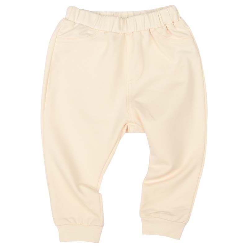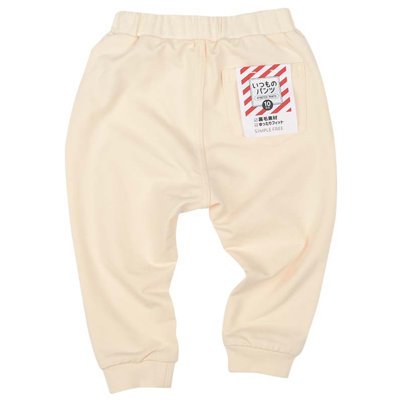 伸縮性があるカットソー生地を使用しました。はき心地の良さが特徴です。 程よい厚さなので、丈夫で、長いシーズン着用できます。 ヒップをキチンと包み込み形、両脇部分でウエストゴムを固定したゴムねじれを防止など、 ストレスフリーで、いつでもはきたくなるパンツです。 裾にリブを付けた少しゆったりシルエットです。 名前が書けるお名前タグ付きです。