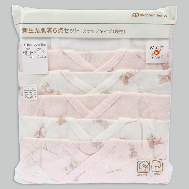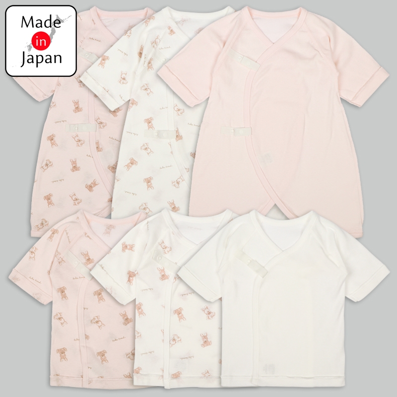 ●セット内容=長袖短肌着3枚・長袖コンビ肌着3枚 ●サイズ(約・cm)=短肌着:50cm コンビ肌着:50~60cm ●素材=綿100% ●原産国=日本