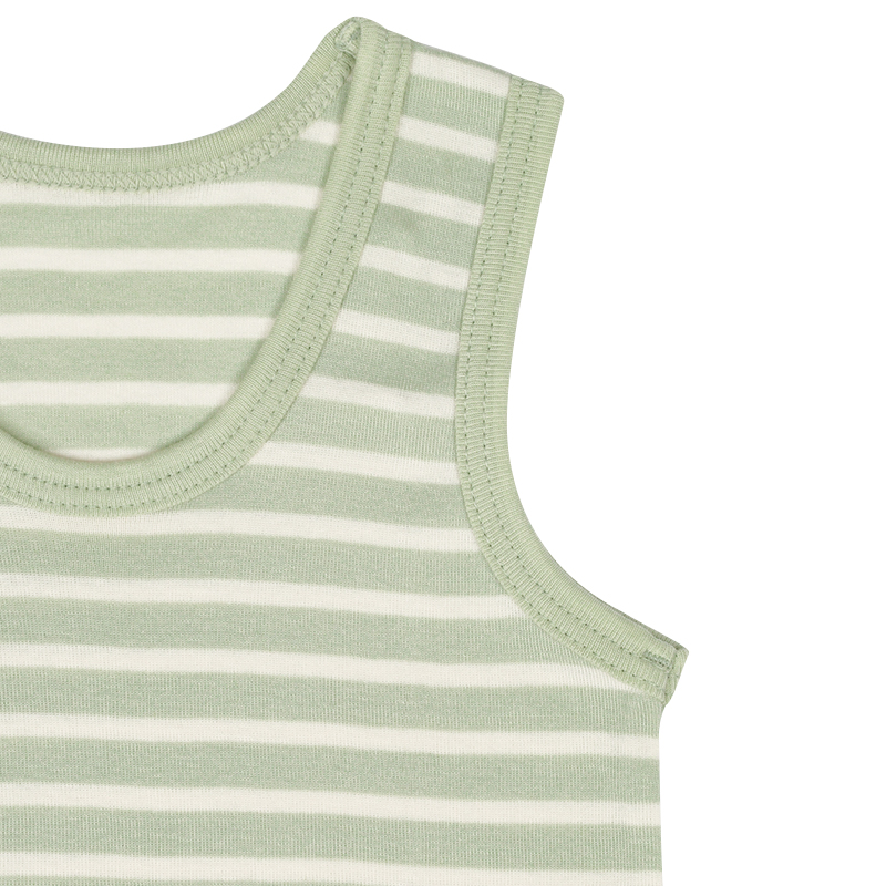 1枚できてもサマになる、おしゃれなかぶりタイプの袖なしのロンパース。 綿100%素材で肌ざわりが柔らかく、敏感なお子さまの肌にも安心。 かぶるだけでサッと着替えられるシンプルなデザイン。 股ボタン仕様でおむつ替えも簡単です。 洗濯ネームは外側に付けており、着用時のチクチクを防止。