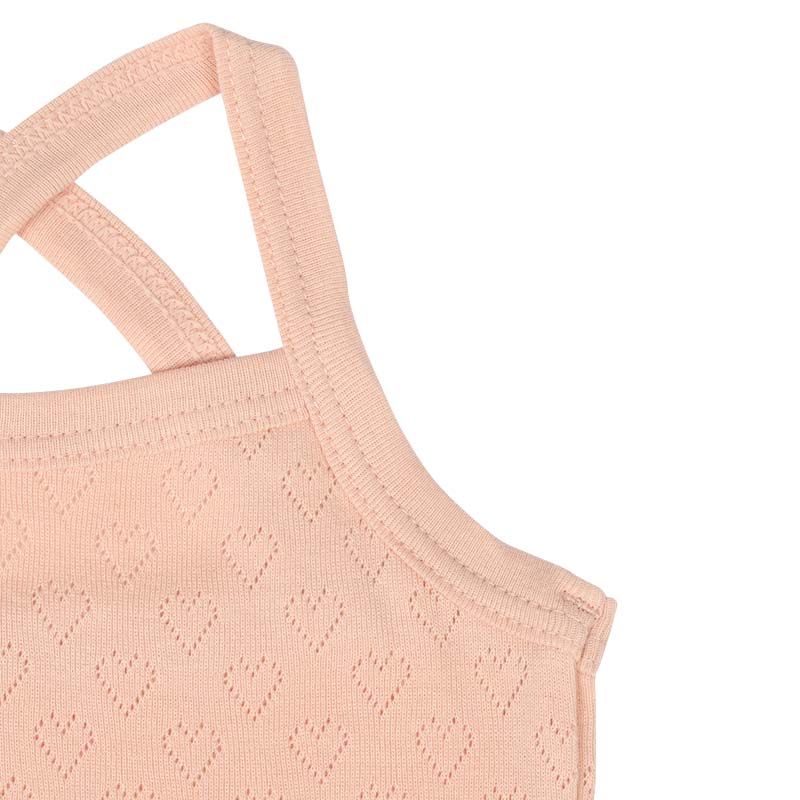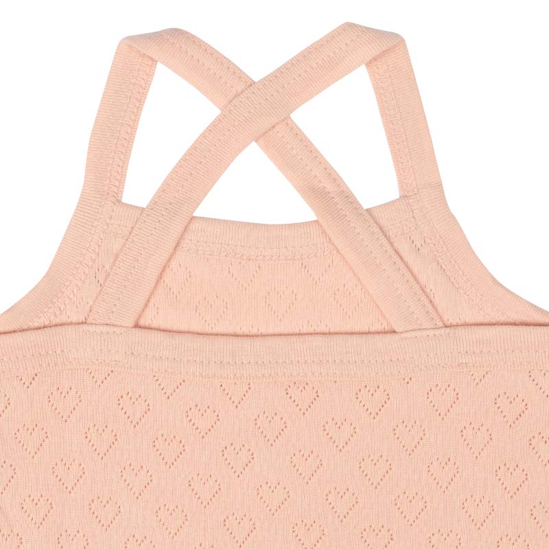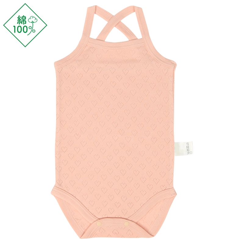 1枚できてもサマになる、おしゃれなキャミソールタイプのロンパース。 綿100%素材で肌ざわりが柔らかく、敏感なお子さまの肌にも安心。 かぶるだけでサッと着替えられるシンプルなデザイン。 股ボタン仕様でおむつ替えも簡単です。 洗濯ネームは外側に付けており、着用時のチクチクを防止。