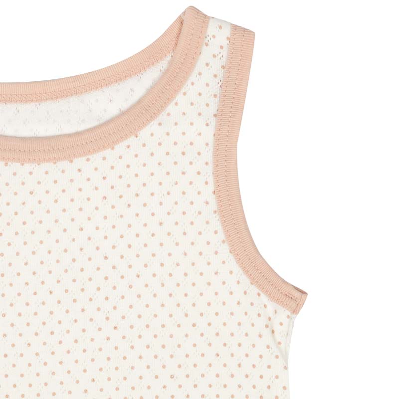 1枚できてもサマになる、おしゃれなタンクトップ型の肌着。 綿100%素材で肌ざわりが柔らかく、敏感なお子さまの肌にも安心。 洗濯ネームは肌にふれない外側に配置し、着用時のチクチクを防止。 さらに、にじみにくいお名前欄付きで、保育園でのお着替えにも便利です。