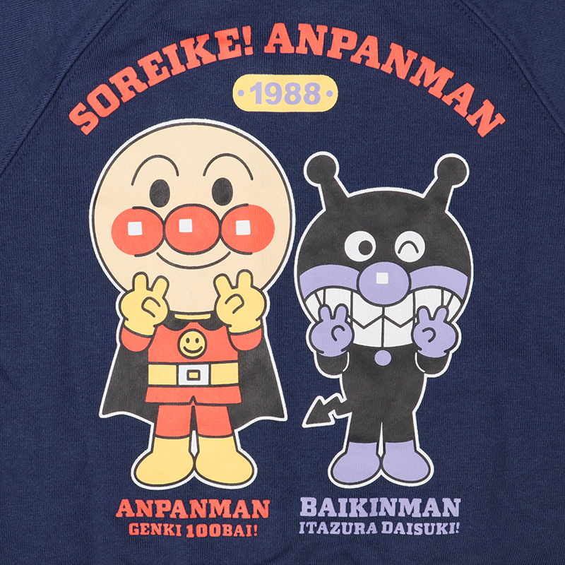 ●素材=本体 ポリエステル65% 綿35% リブ部分 ポリエステル65% 綿30% ポリウレタン5% ●サイズ(約・cm)= [80]着丈34 身幅31 裄丈39 [90]着丈36 身幅32 裄丈42.5 [100]着丈40 身幅34 裄丈46.5 ●洗濯表示=洗濯可 ●原産国=中国製 (C)やなせたかし/フレーベル館・TMS・NTV