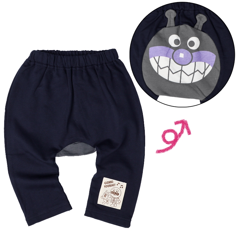 ●素材=綿100% ●サイズ(約・cm)= [80]ウエスト巾19 パンツ丈41 股上20.5 足口巾11 [90]ウエスト巾20 パンツ丈45 股上21.5 足口巾11 ●原産国=中国製 ●洗濯表示=洗濯可 (C)やなせたかし/フレーベル館・TMS・NTV