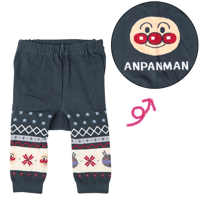 ●素材=綿65% ポリエステル30% ポリウレタン5% ●サイズ(約・cm)= [80-90]総丈38 股上丈25 すそ巾8 ウエスト巾21 ヒップ巾26 [90-95]総丈42 股上丈25 すそ巾8 ウエスト巾21 ヒップ巾26 ●原産国=中国製 ●洗濯表示=洗濯可 (C)やなせたかし/フレーベル館・TMS・NTV