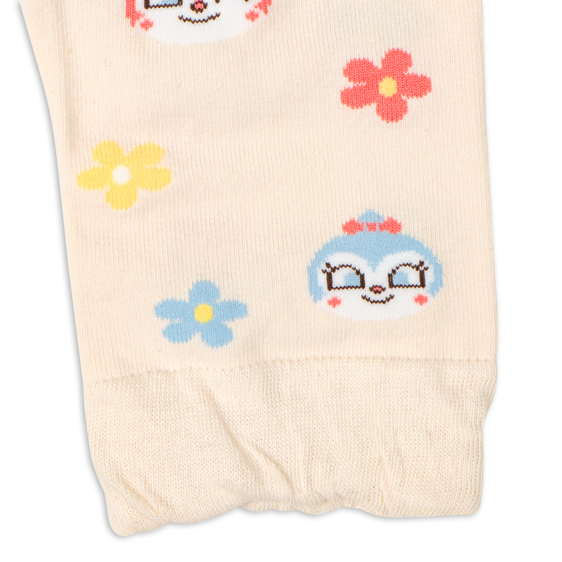 ●素材=綿65% ポリエステル30% ポリウレタン5% ●サイズ(約・cm)= [80-90]総丈38 股上丈25 すそ巾8 ウエスト巾21 ヒップ巾26 [90-95]総丈42 股上丈25 すそ巾8 ウエスト巾21 ヒップ巾26 ●原産国=中国製 ●洗濯表示=洗濯可 (C)やなせたかし/フレーベル館・TMS・NTV