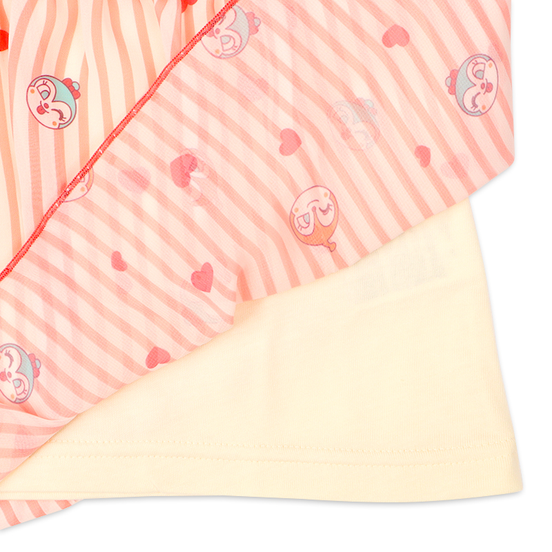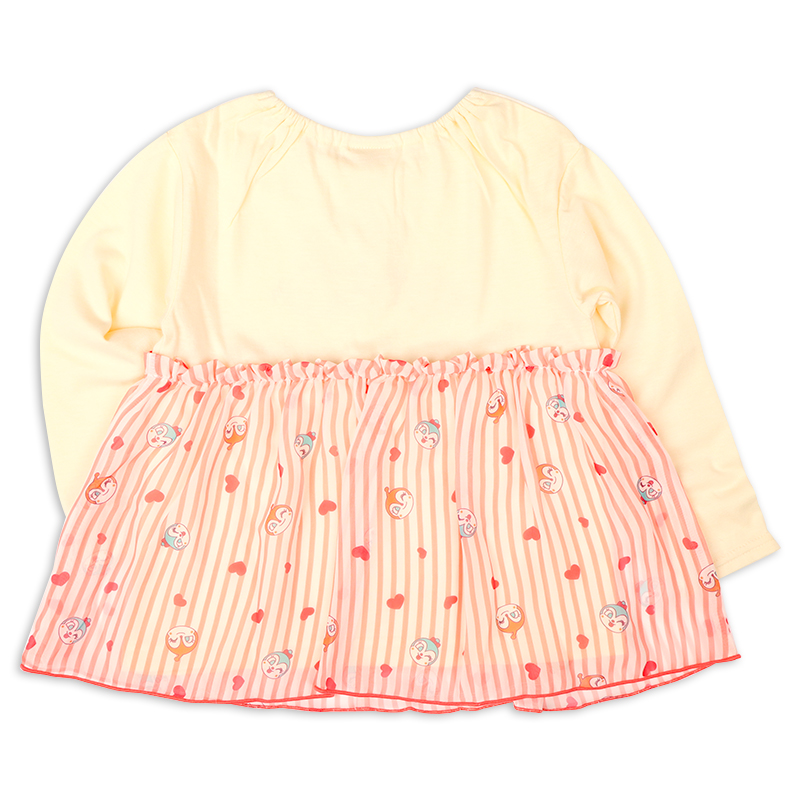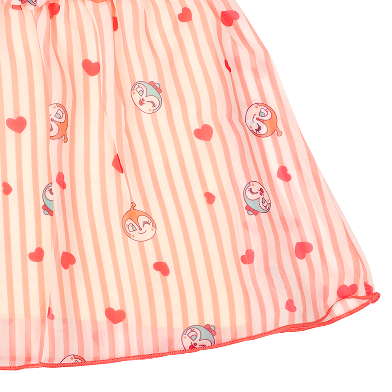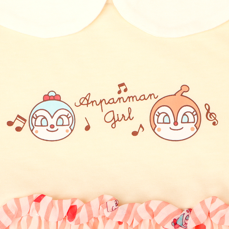 ●素材=本体 ポリエステル65% 綿35% シフォン ポリエステル100% ●サイズ(約・cm)= [110]着丈(フリル裾46 身幅(前33 肩幅31 袖丈35 [120]着丈(フリル裾49 身幅(前35 肩幅33 袖丈39 ●原産国=中国製 ●洗濯表示=洗濯可 (C)やなせたかし/フレーベル館・TMS・NTV