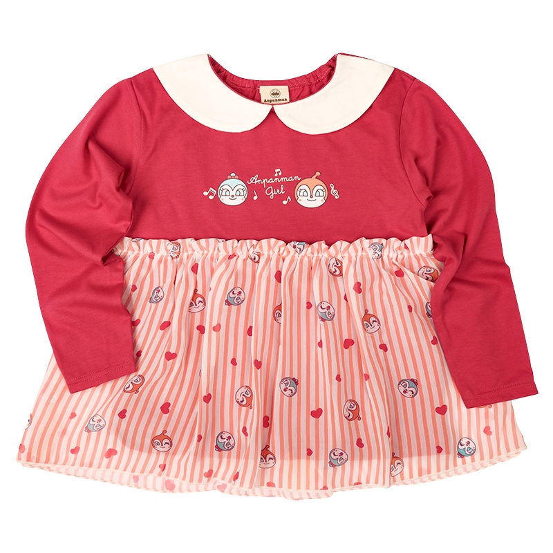 ●素材=本体 ポリエステル65% 綿35% シフォン ポリエステル100% ●サイズ(約・cm)= [110]着丈(フリル裾46 身幅(前33 肩幅31 袖丈35 [120]着丈(フリル裾49 身幅(前35 肩幅33 袖丈39 ●原産国=中国製 ●洗濯表示=洗濯可 (C)やなせたかし/フレーベル館・TMS・NTV