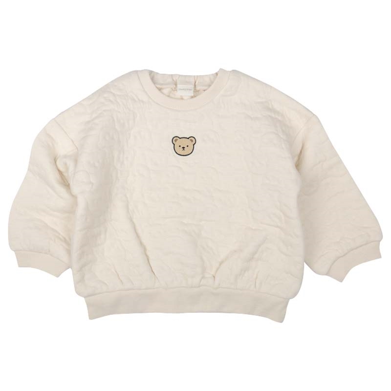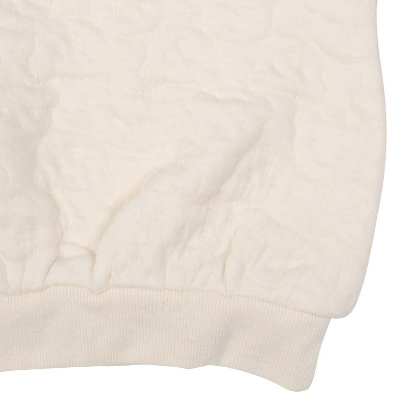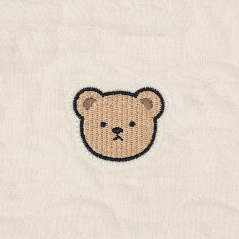 ベビー男児冬向け、オリジナルキルト長袖トレーナーのご提案です。 くまの模様が入ったオリジナルキルト素材(中わた入り)です。 胸元にはくま型のワッペン刺繍が入って可愛いです。 また、衿・袖・裾は伸びにくいスパンリブを使用しております。 色は 白ベースとイエローベースの2色展開、サイズは 80/90/95cm の3サイズ展開になります。