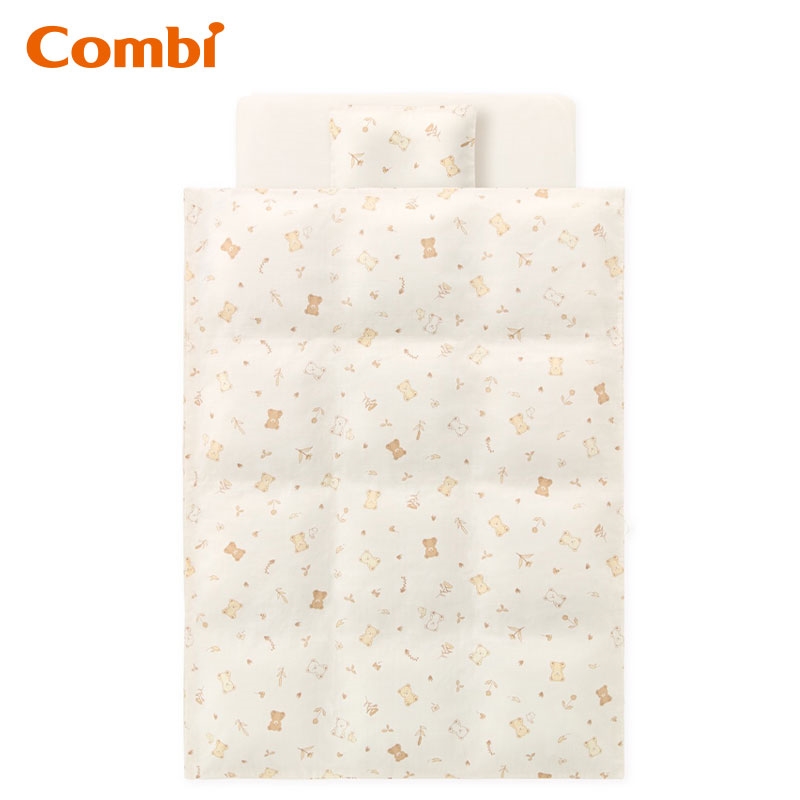 眠る時間は、赤ちゃんの健やかな成長に欠かせない大切な時間。 しかし、乳児期の睡眠には、掛けふとんの顔がかりなど、思わぬリスクが潜んでいることも…。 ”すくすや ベビー羽毛ふとん”にはそんなリスクを軽減する機能を追加。 心地よい睡眠をまもります。 《コンビだけ※1の安心機能》 掛けふとんが顔にかからず※2、窒息リスクを軽減します。 『顔がかり防止ストラップ(特許出願中)』により、 掛けふとんが上にずれるのを防止するので、顔に掛かる心配なし。 掛けふとんカバーのループに、敷き布団にあるストラップを通して留めるだけで、 掛けふとんの顔がかりを防止します。 ※1 国内販売のベビーふとんセットにおいて(2025年2月時点 コンビ調べ) ※2 誤使用を除く 《体圧を分散するから、快適に眠れる。立体ファイバー構造の敷きふとん。》 網状に絡まった立体ファイバー構造(ブレ スエアーR使用)により、 赤ちゃんにかかる体圧を分散。 通気性がよくムレにくいので、 長時間眠る赤ちゃんの成長と快適な眠りをサポートします。 ※東洋紡エムシー株式会社と共同開発 ※ブレ スエアーRは東洋紡エムシー株式会社の三次元網状繊維構造体を示す商標です。 《丸洗いできるから、清潔。シャワーで丸洗いOK。》 敷きふとんが汚れた時カバーは洗濯機、 中材はシャワーで丸洗いが出来るのでラクラク。 また、水切れがよく速く乾かして使用出来るから、 いつでも清潔な環境で眠ることが出来ます。 《羽毛掛け布団》 軽さにこだわり、保温性・吸放湿性に優れた ホワイトダックダウン85%の羽毛ふとんは洗濯機で丸洗いが可能です。 また、乾燥機でも手軽にお手入れできるので、忙しい育児の時短に。 《吸水速乾Wガーゼ(※お肌に触れるカバーに使用)》 肌に直接触れるカバー類は、サラサラでやわらかいガーゼが 二重になった吸水速乾Wガーゼを採用。 汗っかきな赤ちゃんも快適に過ごせます。 また、暑い季節には、掛けふとんカバーのみを ガーゼケットとして使用できます。