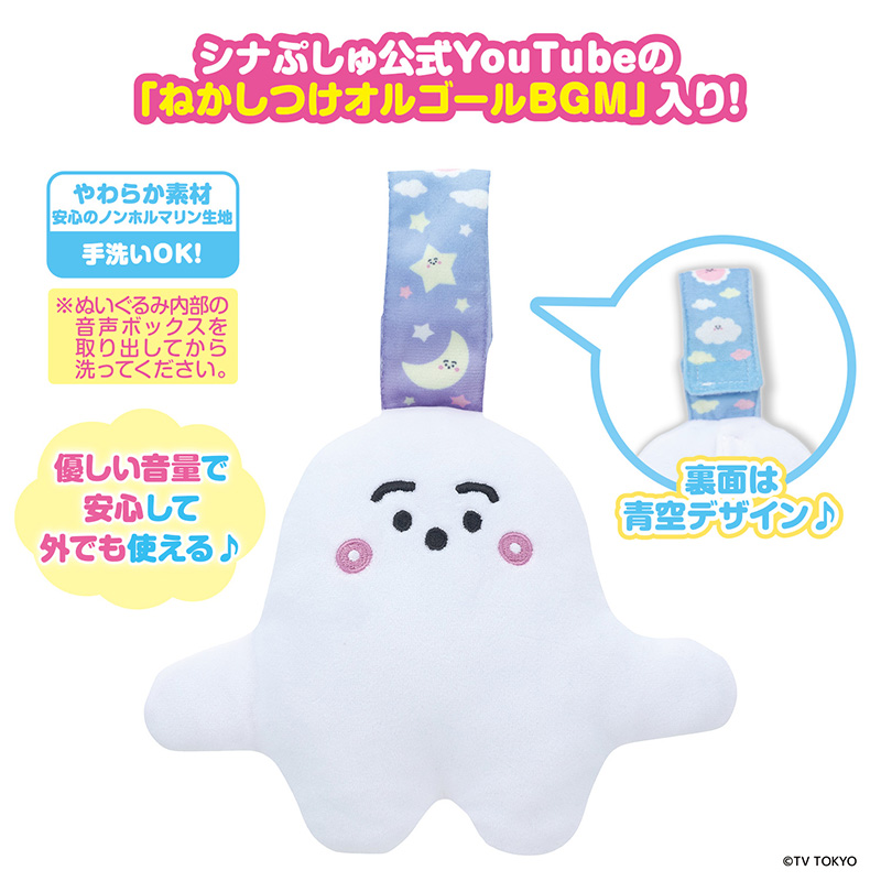 赤ちゃんの眠りに寄り添うおやすみモードと、 ぐずった時やおでかけ用に活躍する日常モード。 シナぷしゅ公式YouTubeのねかしつけオルゴールBGM2曲、 ぷしゅぷしゅ音頭のメロディ1曲を収録。 他にもぷしゅぷしゅボイスや赤ちゃんが落ち着く効果音などがもりだくさん。 ベルト付きでベビーカーにも付けられ、持ち運びにも便利です。