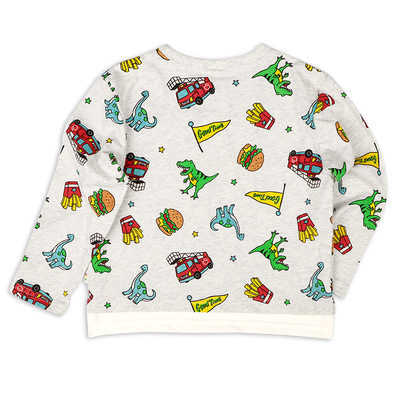 ●素材=天竺 [本体]綿100%[リブ]綿93%ポリウレタン7%[部分使]綿100% ●サイズ(約・cm)= [100] 身丈38・身幅34・袖丈32・裾幅34 [110] 身丈41・身幅36・袖丈35.5・裾幅36 [120] 身丈44・身幅38・袖丈38.5・裾幅38 [130] 身丈47・身幅40・袖丈41.5・裾幅40