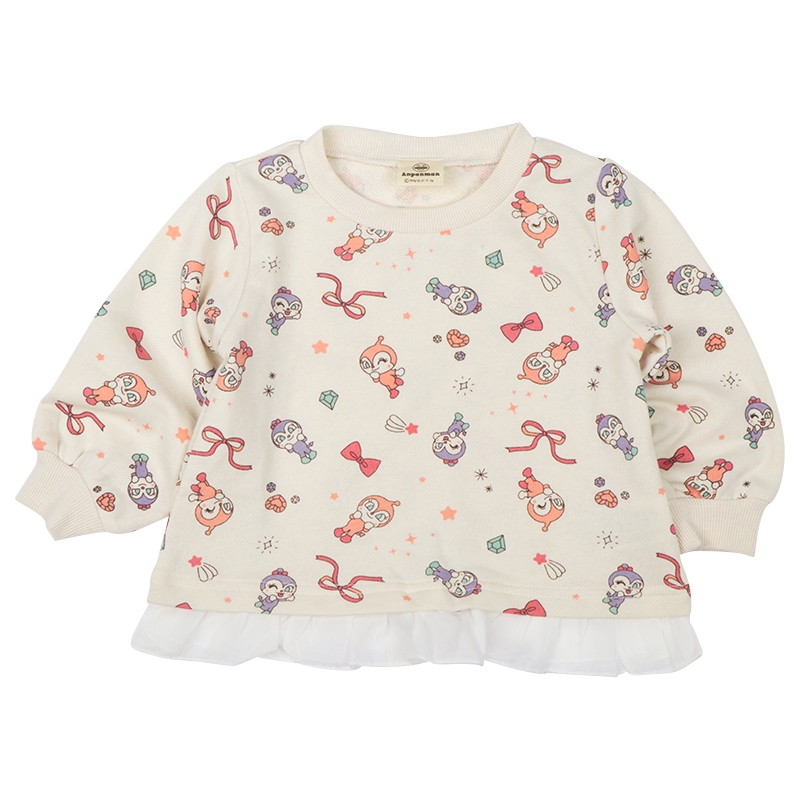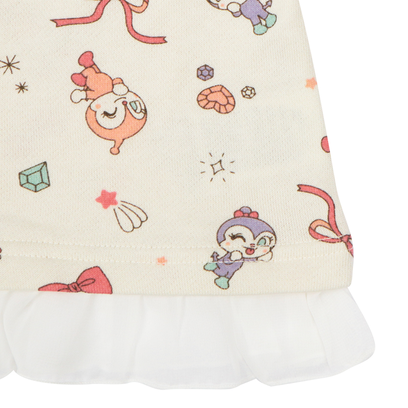 ●素材=本体 ポリエステル65% 綿35% リブ部分 ポリエステル65% 綿30% ポリウレタン5% 裾フリル ポリエステル100% ●サイズ(約・cm)= [80]着丈33 身幅29 肩幅23 袖丈27 [90]着丈37 身幅30 肩幅24 袖丈30 [100]着丈41 身幅32 肩幅26 袖丈33.5 ●洗濯表示=洗濯可 ●原産国=中国製 (c)やなせたかし/フレーベル館・TMS・NTV