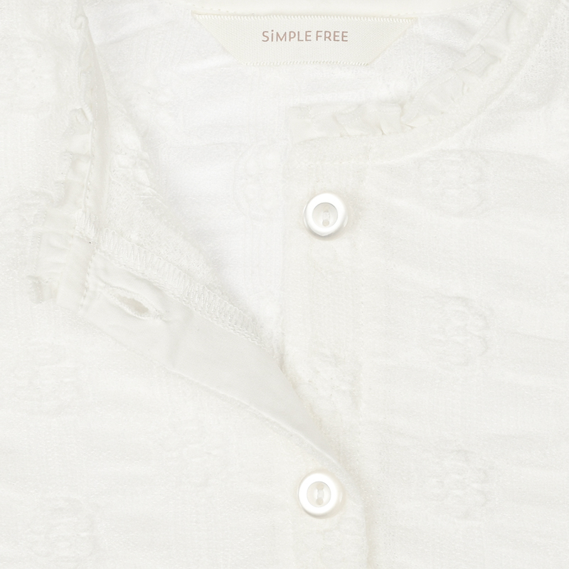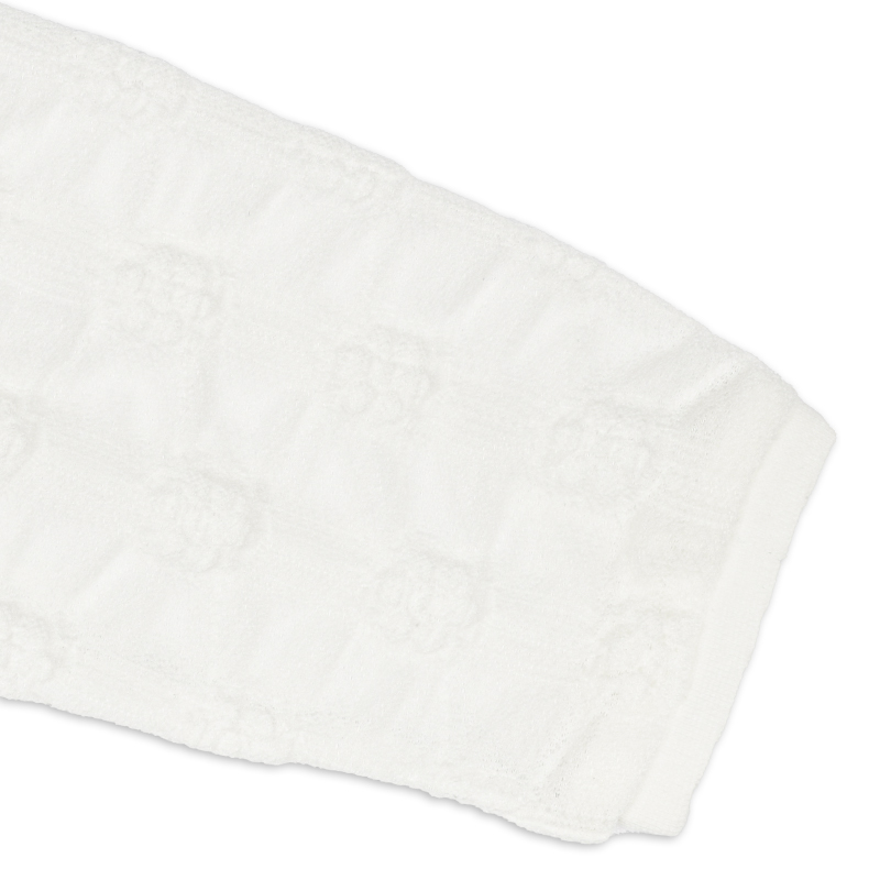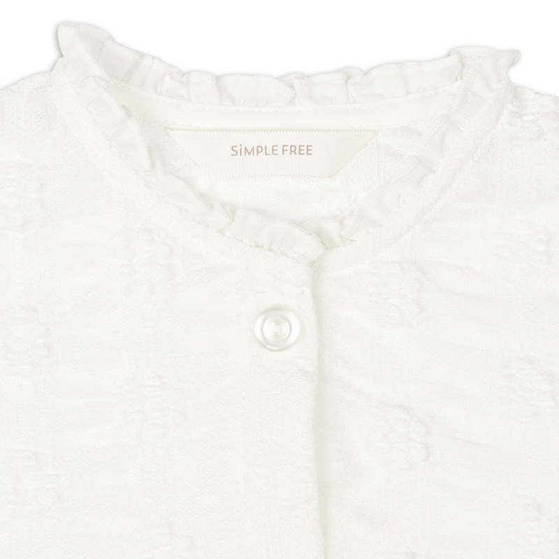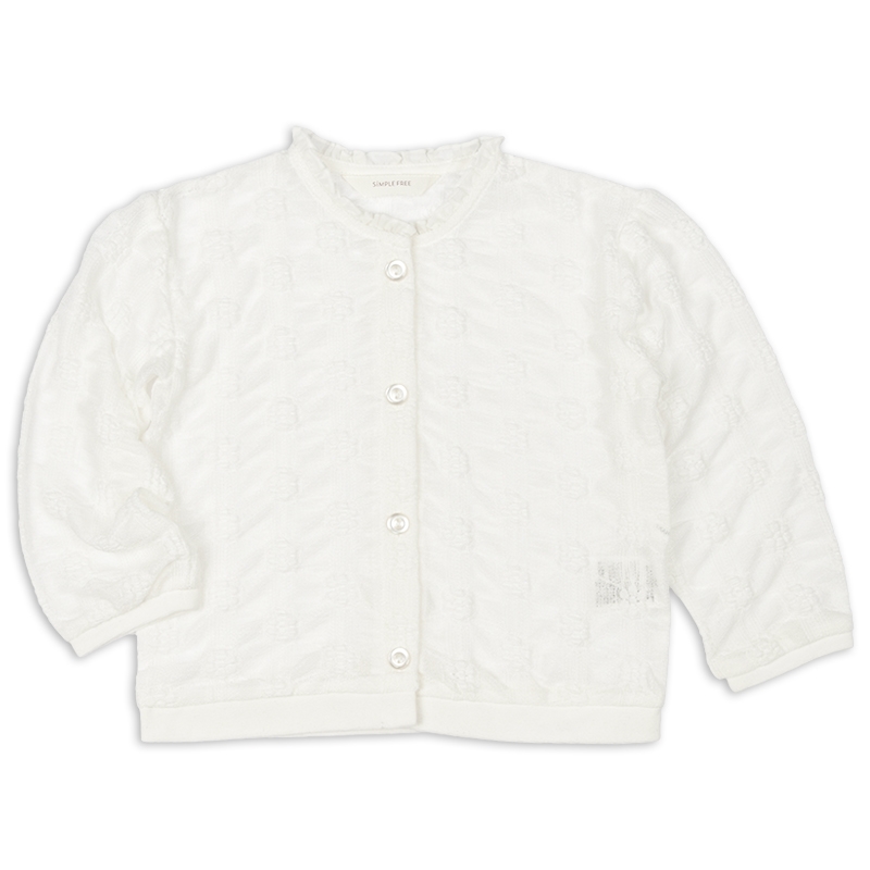 ●素材=本体:ナイロン98%ポリウレタン2% フリル:ポリエステル100% リブ:綿96%ポリウレタン4% ●サイズ(約・cm)= 80(身丈32・身幅31・袖丈25) 90(身丈34・身幅32・袖丈28.5) 95(身丈35・身幅33・袖丈30)
