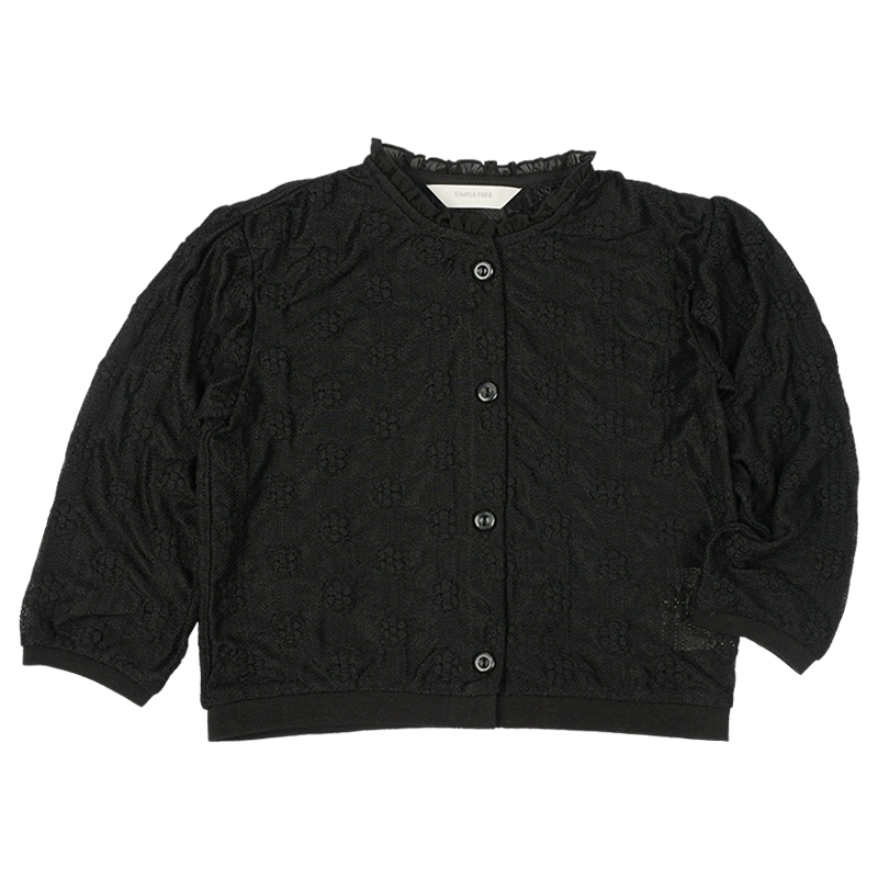 ●素材=本体:ナイロン98%ポリウレタン2% フリル:ポリエステル100% リブ:綿96%ポリウレタン4% ●サイズ(約・cm)= 80(身丈32・身幅31・袖丈25) 90(身丈34・身幅32・袖丈28.5) 95(身丈35・身幅33・袖丈30)