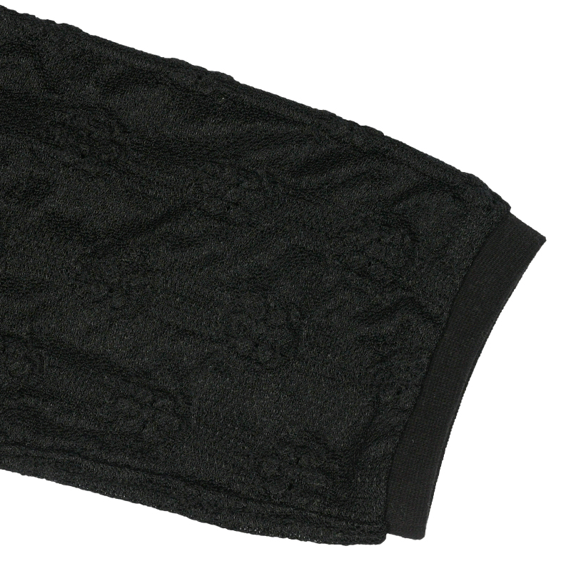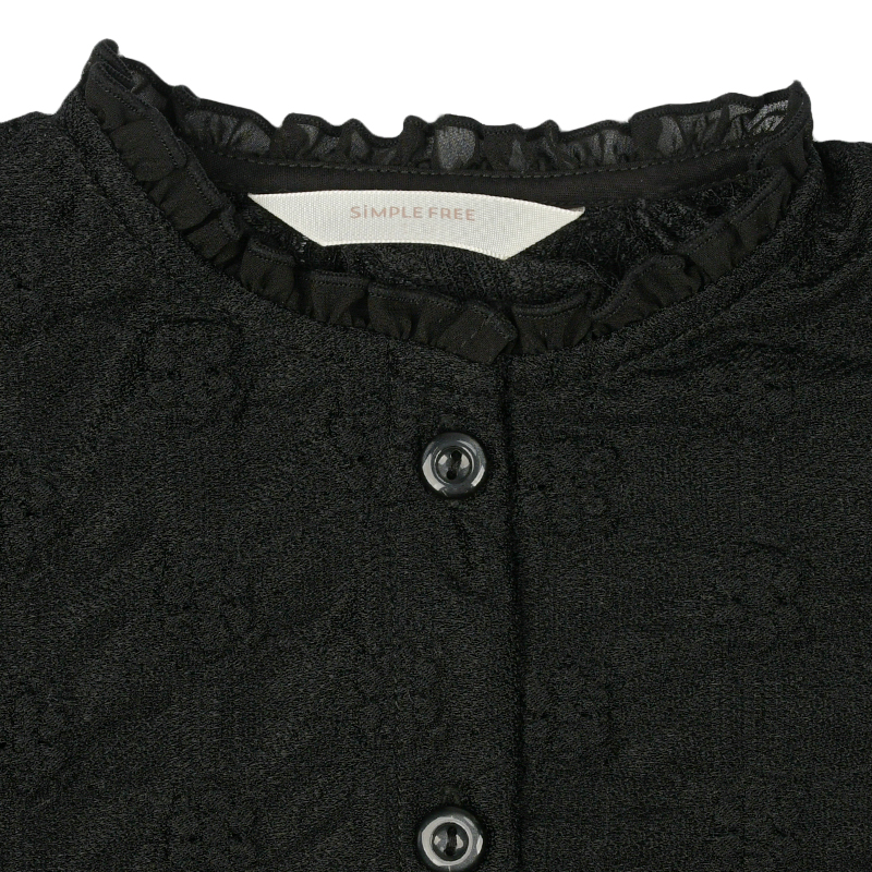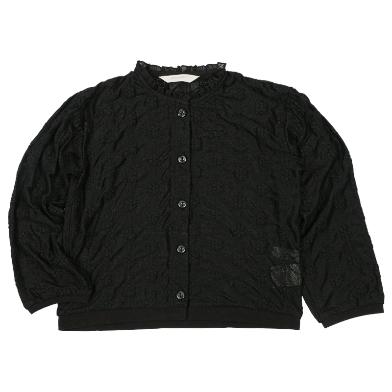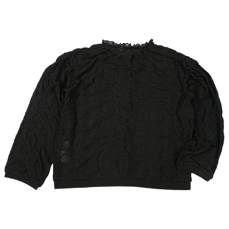 ●素材=本体:ナイロン98%ポリウレタン2% フリル:ポリエステル100% リブ:綿96%ポリウレタン4% ●サイズ(約・cm)= 80(身丈32・身幅31・袖丈25) 90(身丈34・身幅32・袖丈28.5) 95(身丈35・身幅33・袖丈30)