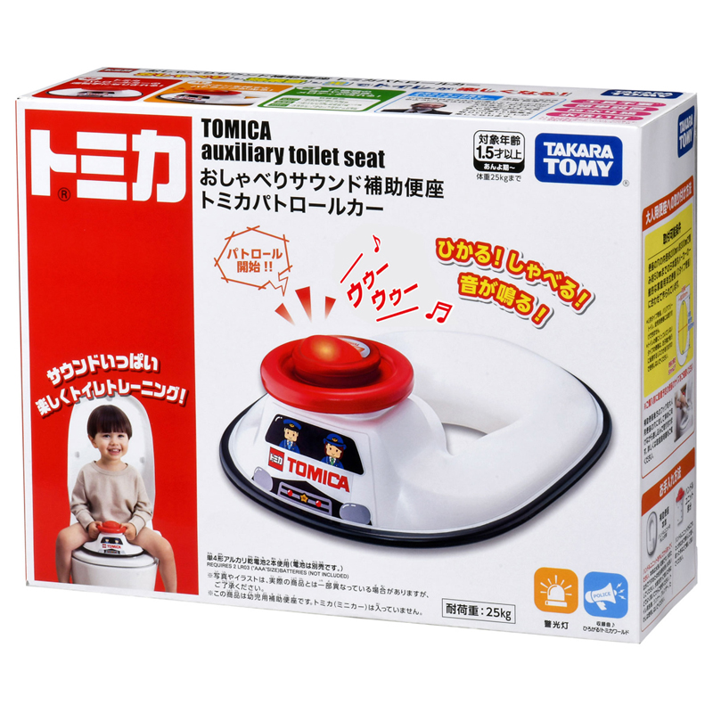 ●対象年齢:1歳6ヵ月~ ●適応体重:25kgまで ●パッケージサイズ:W370×H290×D130 ●電池:単4形アルカリ乾電池2本使用(電池は別売です。) ●梱包内容:本体(1),ハンドル(サウンドユニット)(1),パッキン(1),取扱説明書(1), ●商品素材:(本体)ABS、PP、TPE、(ハンドルユニット)ABS、(すべり止め、パッキン)TPE