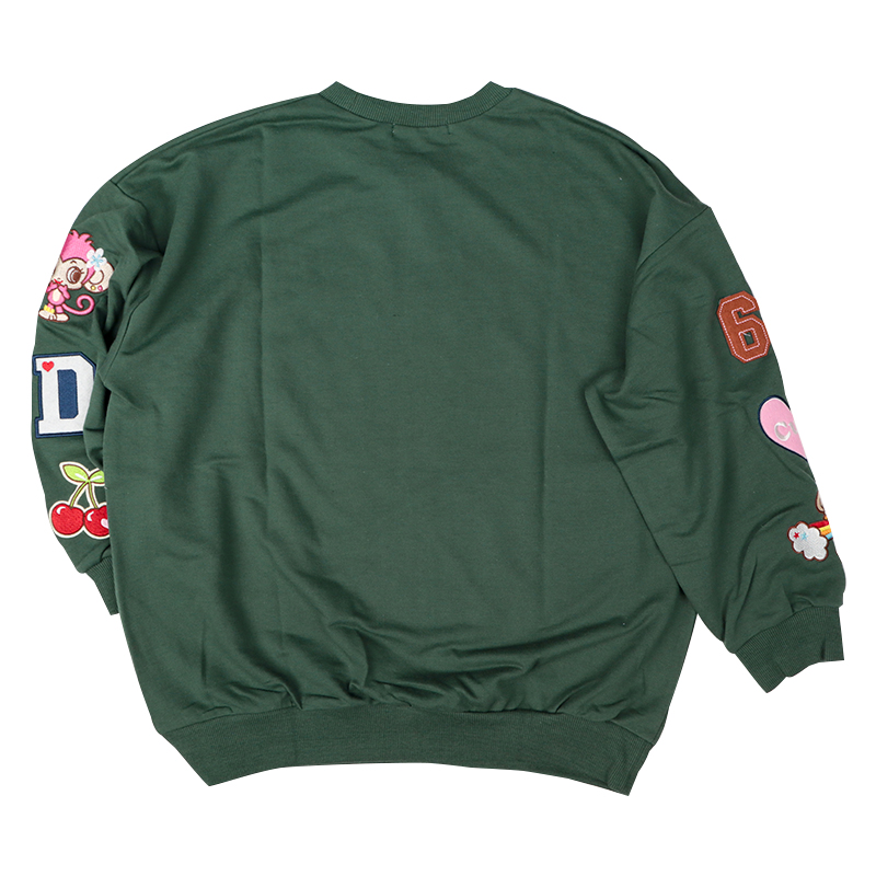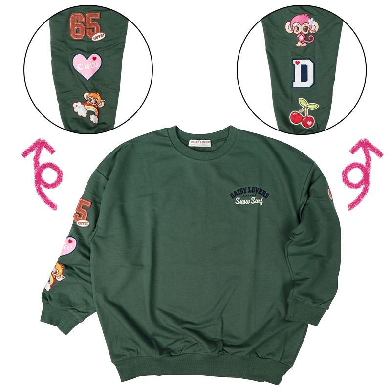 ●素材=本体 ポリエステル65% 綿35% リブ部分 ポリエステル65% 綿30% ポリウレタン5% ●サイズ(約・cm)= [130]着丈54 身幅50 肩幅51 袖丈36.5 [140]着丈58 身幅53 肩幅54 袖丈39 [150]着丈62 身幅56 肩幅57 袖丈41.5 ●原産国=中国製 ●洗濯表示=洗濯可