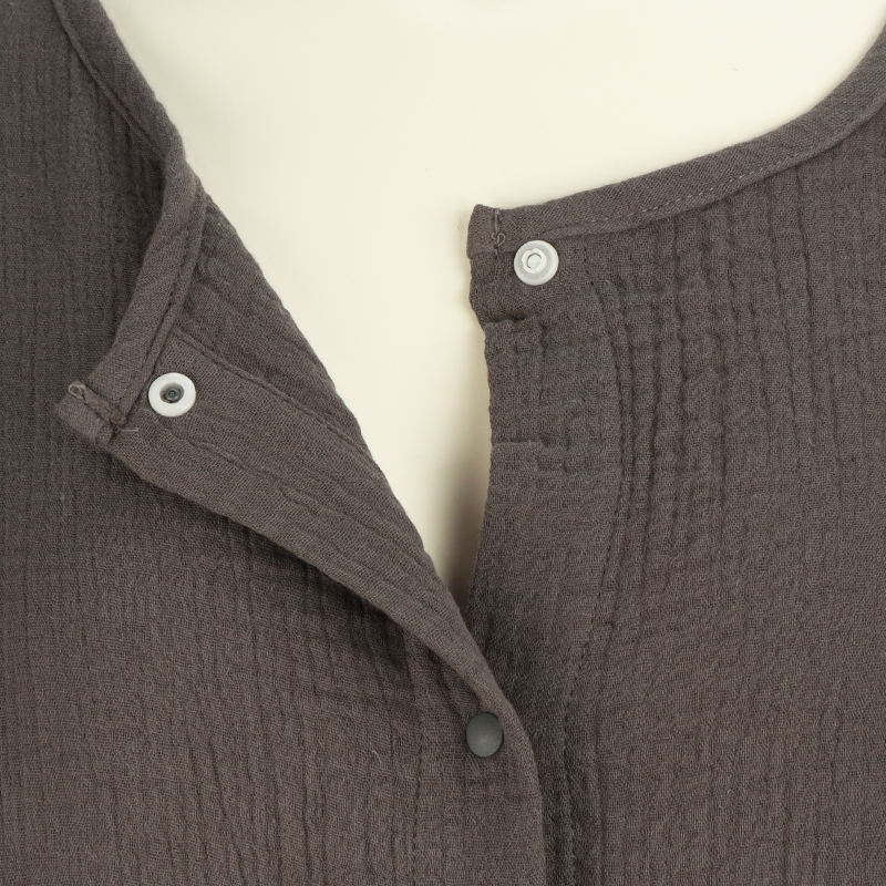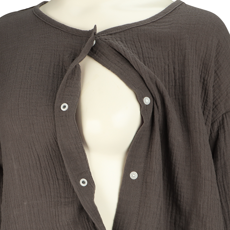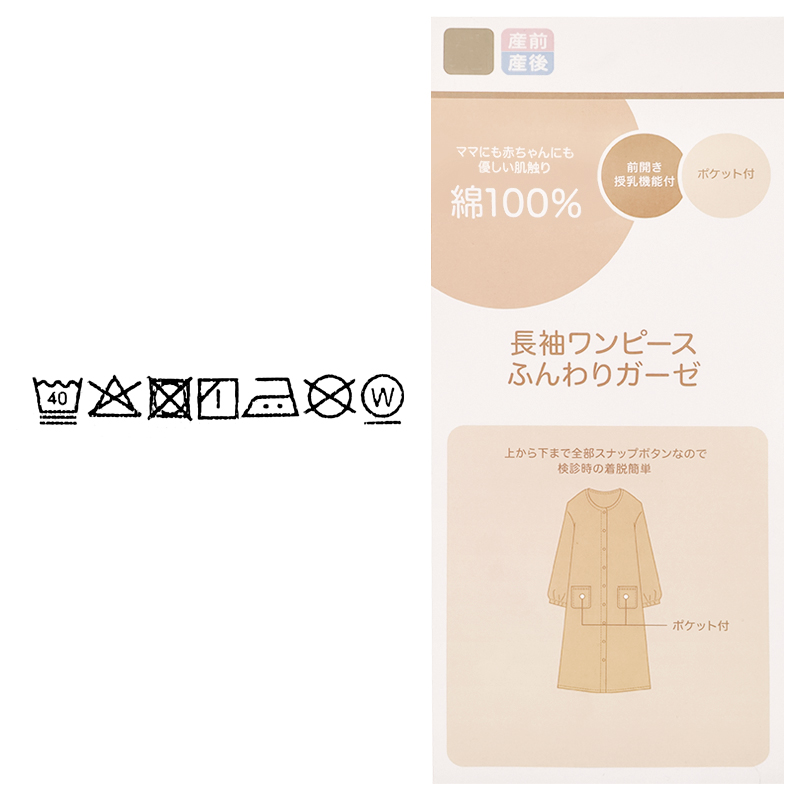 赤ちゃんにもママにもやさしい肌触りの綿100%素材。 上から下まで全部スナップボタンなので、入院中の検診や帝王切開の時にも着脱簡単。 左右にスマホ等がすっぽり入るポケット付き。 前開き授乳機能付き。 着丈約110cm