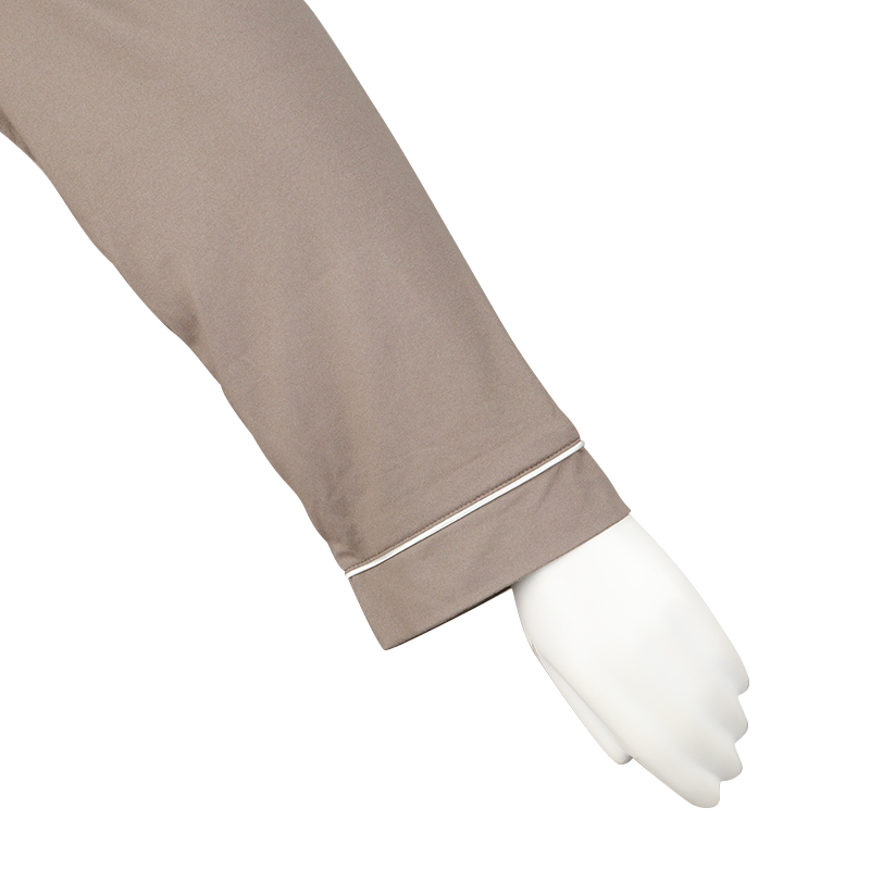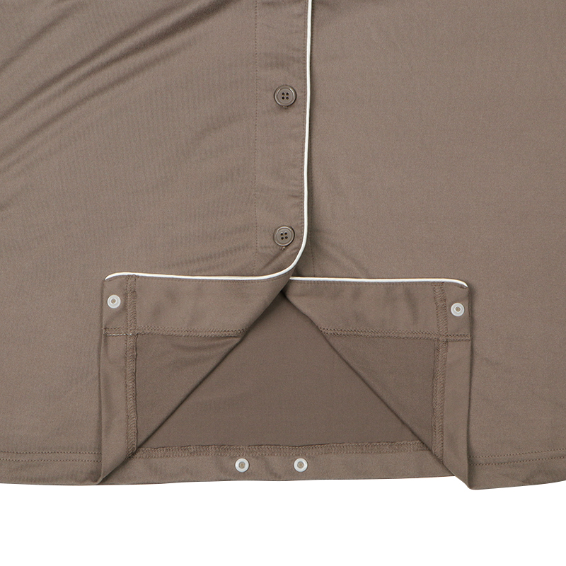 裾のスナップボタンを留めてロンパースとしても着られる、便利な2WAY仕様。寝ている時や回診時など、裾がまくり上がりません。
