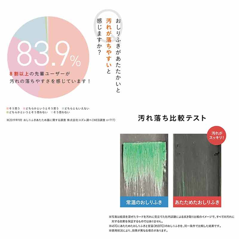 ●商品サイズ(mm):W219×D179×H154 ●重量:1,000g ●使用できるおしりふきのパッケージサイズ(約):W170×D110×H65(mm)以下 ●使用できないおしりふきのタイプ ・上記記載の使用できるパッケージサイズ以上のおしりふき ・取り出し口がプラスチック製のタイプ(ヒーターが密着せず、おしりふきが温まりません。) ・トイレに流せるタイプ(本製品で仕様すると、取り出す際におしりふきがやぶれやすくなります。) ・結露が著しく生じるタイプ ・乾きが著しいタイプ ※使用した際に乾燥が著しいタイプは、次回より別のおしりふきをお試し下さい。 ・おしりふきとして市販されているシート以外の除菌シートやウェットティッシュなど。 ●主要素材: ・PP(ポリプロピレン) ・ABS(アクリロニトリルブタジエンスチレン共重合体) ●電源コードの長さ ・1.8m