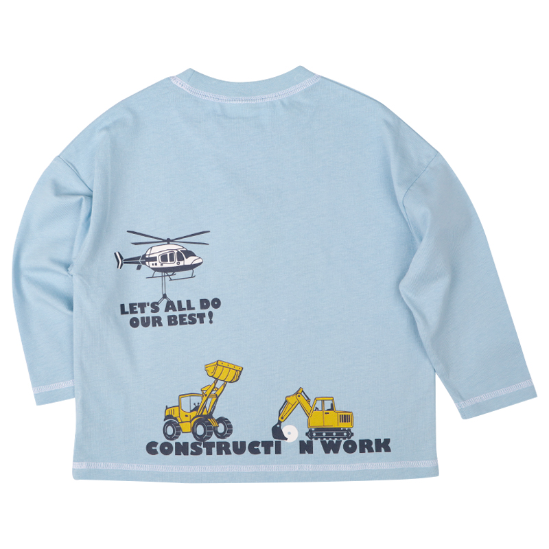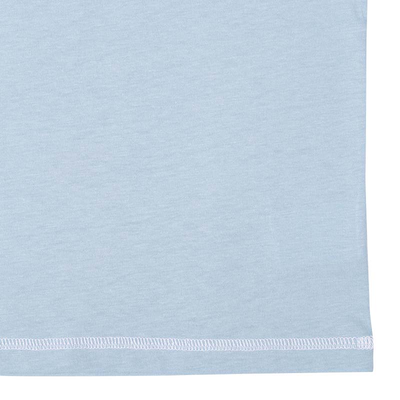 本体は肌触りのよい綿100%天竺素材です。前後両方にプリントがあり、前から見ても後ろから見ても楽しめるデザインです。どんなボトムスにも合わせやすく、通学からお出かけまでデイリー使いにぴったりの1枚となっています。