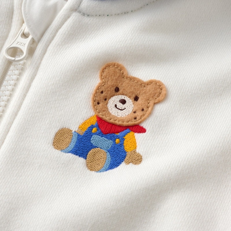 フードに付いたくまみみや裏地の総柄がアクセントに。
